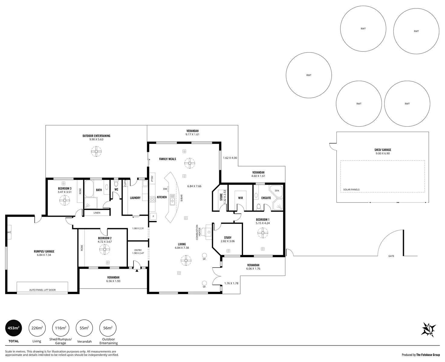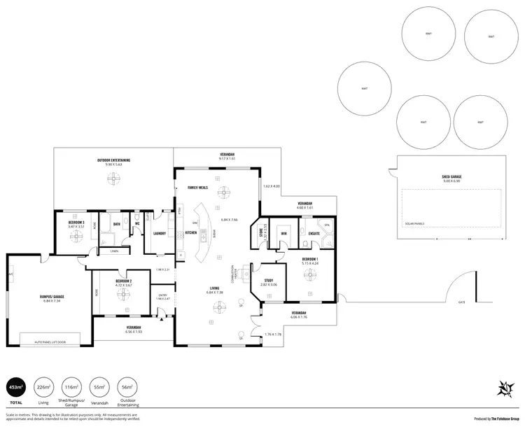 • 62.1m2 shed connected to power and alarm system.