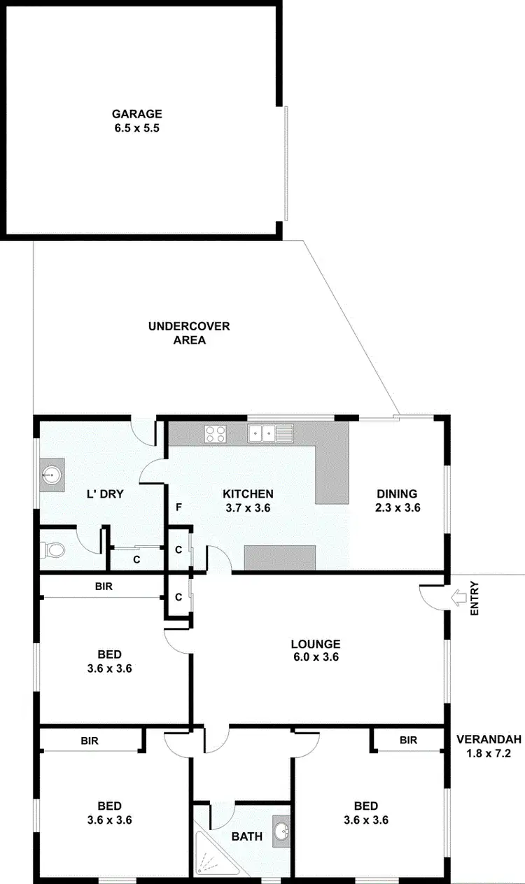 Three generous sized bedrooms, each with built-in robes and fan. The main bedroom features also a split system AC. The family bathroom has a spa with shower and separate toilet. There is an extra-large laundry with a double sink.