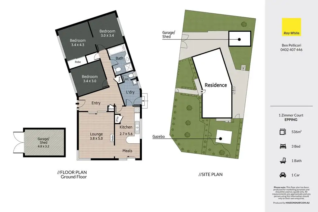 3 Bed • 1 Bath • 2 Car • 537m²