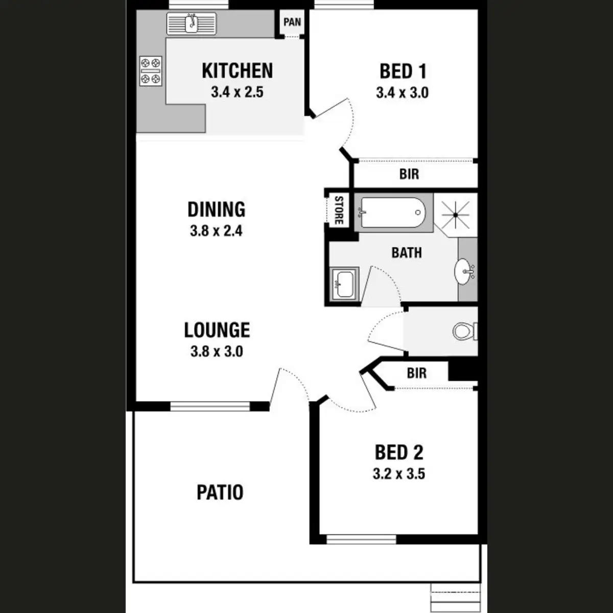 2 Bed • 1 Bath • 1 Car • 74m²