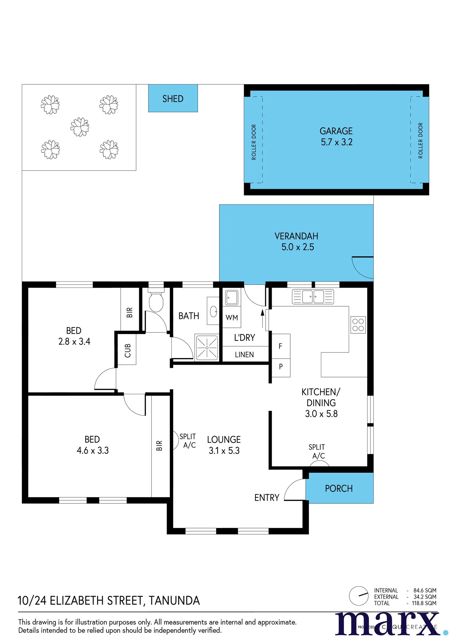 2 Bed • 1 Bath • 2 Car • 165m²
