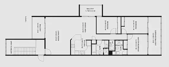Apartment size: 98.8m2 plus front Balcony 6.9m2 Side Balcony: 6.7m2 Back Balcony: 11.9m2