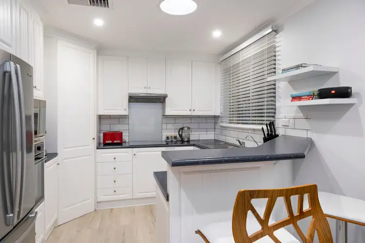 - The kitchen provides ample countertop space, a breakfast bar, a double sink with a puratap, a dishwasher, an electric cooktop with a high glass splashback, an oven, a full sized pantry, several overhead cupboards, a skylight for natural lighting and direct access to the entertaining area in the back yard