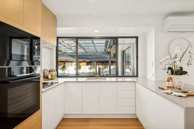 It has a light-filled and breezy design that's supremely easy-to-maintain, featuring crisp and contemporary inclusions with cool high quality timber look flooring. The large open living area connects seamlessly to the outside, offering space for those who love to live, relax and entertain in utmost style and privacy. The sheltered BBQ patio lets you dine alfresco in all-weather conditions, while overlooking a sunlit level yard. There are four great-sized bedrooms, including two primary suites both with a walk-in robe and ensuite, and a sleek kitchen with stone breakfast bar and quality fittings.