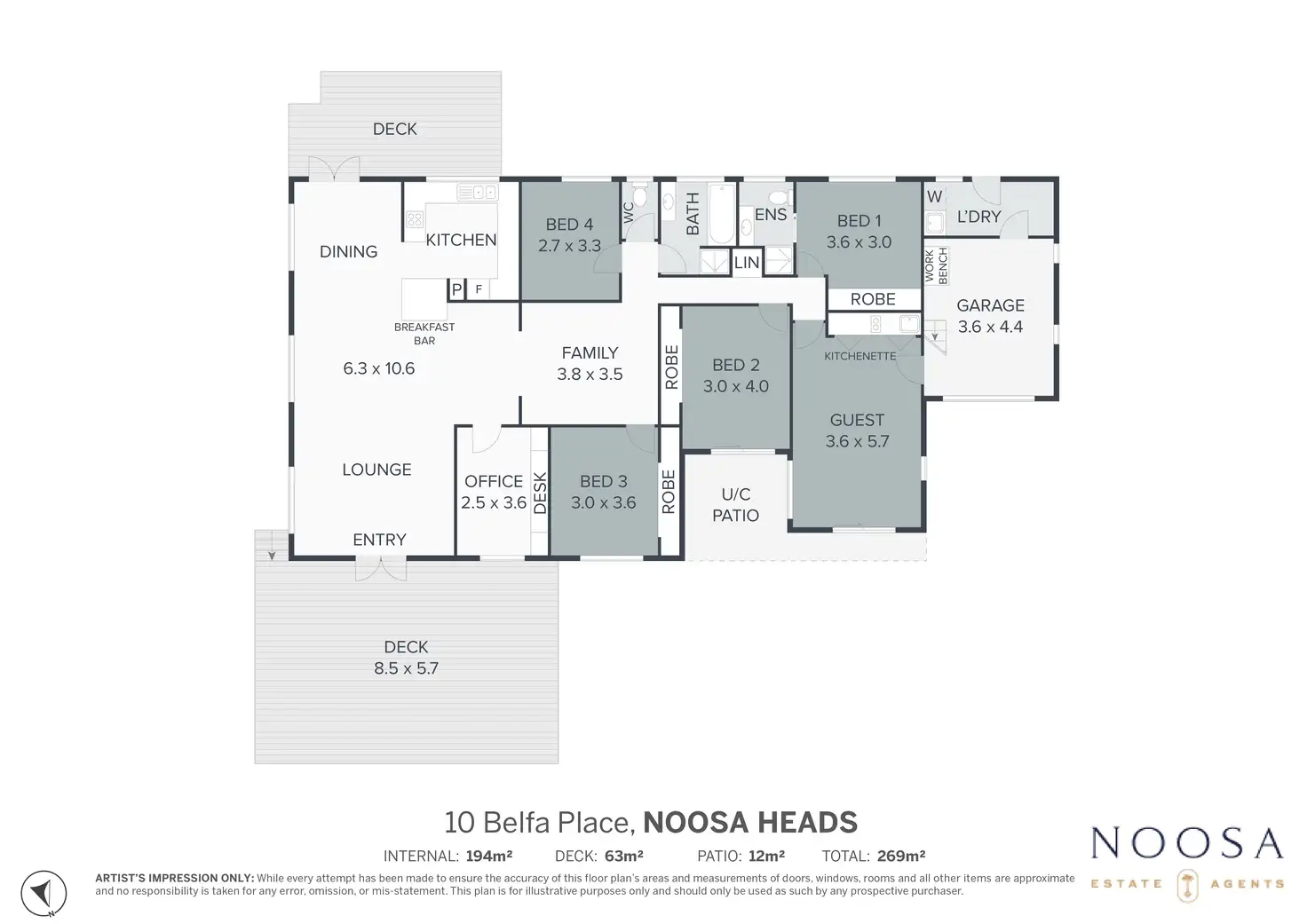 • 4 bedrooms, 2 bathrooms, 2 living areas, office and single garage