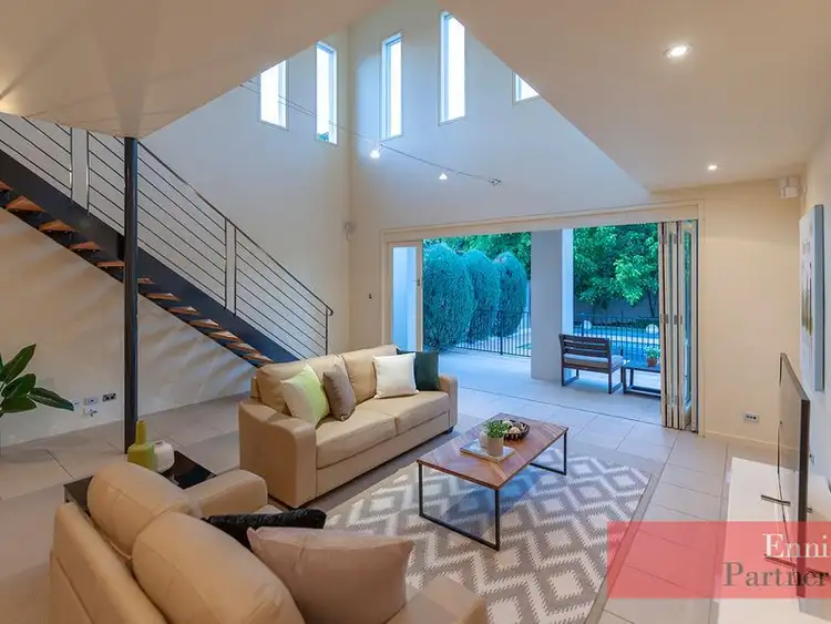 • A sensational "New York style" living room with a towering ceilings and wired up with Bose speakers, looking north through fully opening concertina doors over the rear sun-drenched "Palace Club" verandah and easily maintained "green" rear garden.