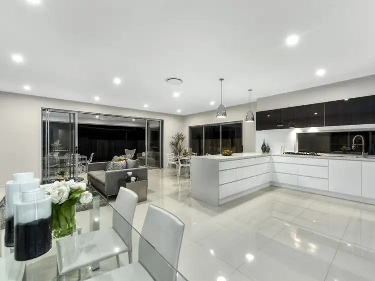 The downstairs area consists of a separate formal lounge or media room, study desk, powder room and laundry, all which flow seamlessly onto an open plan kitchen, dining and living, plus outdoor alfresco living. The kitchen allows plenty of storage without compromising its sleek and modern design. Features include an expansive butler's pantry, gas cooking and two ovens, as well as two wine fridges; perfect for the entertainer, or busy household chef.