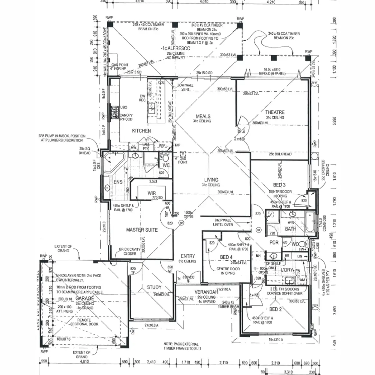 The expansive dining and living areas enjoy views to the alfresco and double doors open to the theatre room. Here the bi-fold windows and glass screens allow the outside pool and entertainment areas to flow together, how clever!