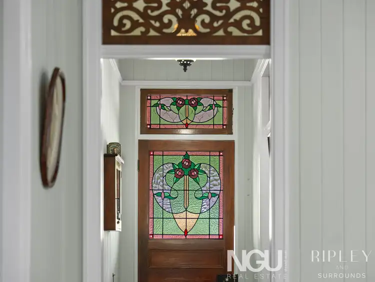 From the moment you step inside, you are greeted with exquisite craftsmanship: coloured leadlight panelling, soaring three-metre VJ walls, ornate timber fretwork and breezeways, polished hoop pine floors, and elegant picture rail mouldings. Expansive casement and double-hung windows bathe the interiors in natural light, while touches such as the original candle-holder light fixtures add a sense of romance and nostalgia to the spaces.