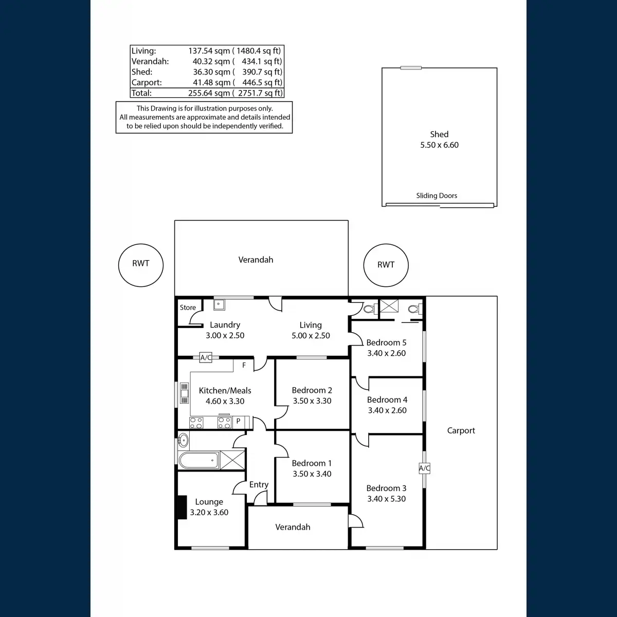 5 Bed • 2 Bath • 2 Car • 1141m²