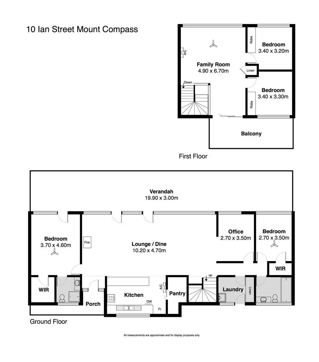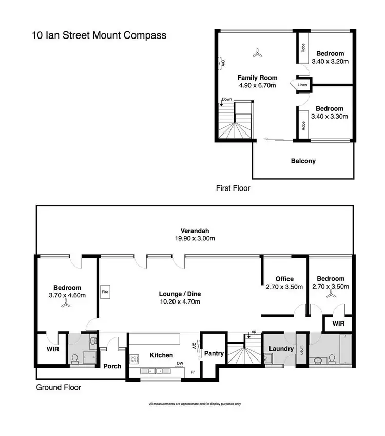 Two split system air-conditioners (one up, one down) and ceiling fans throughout.