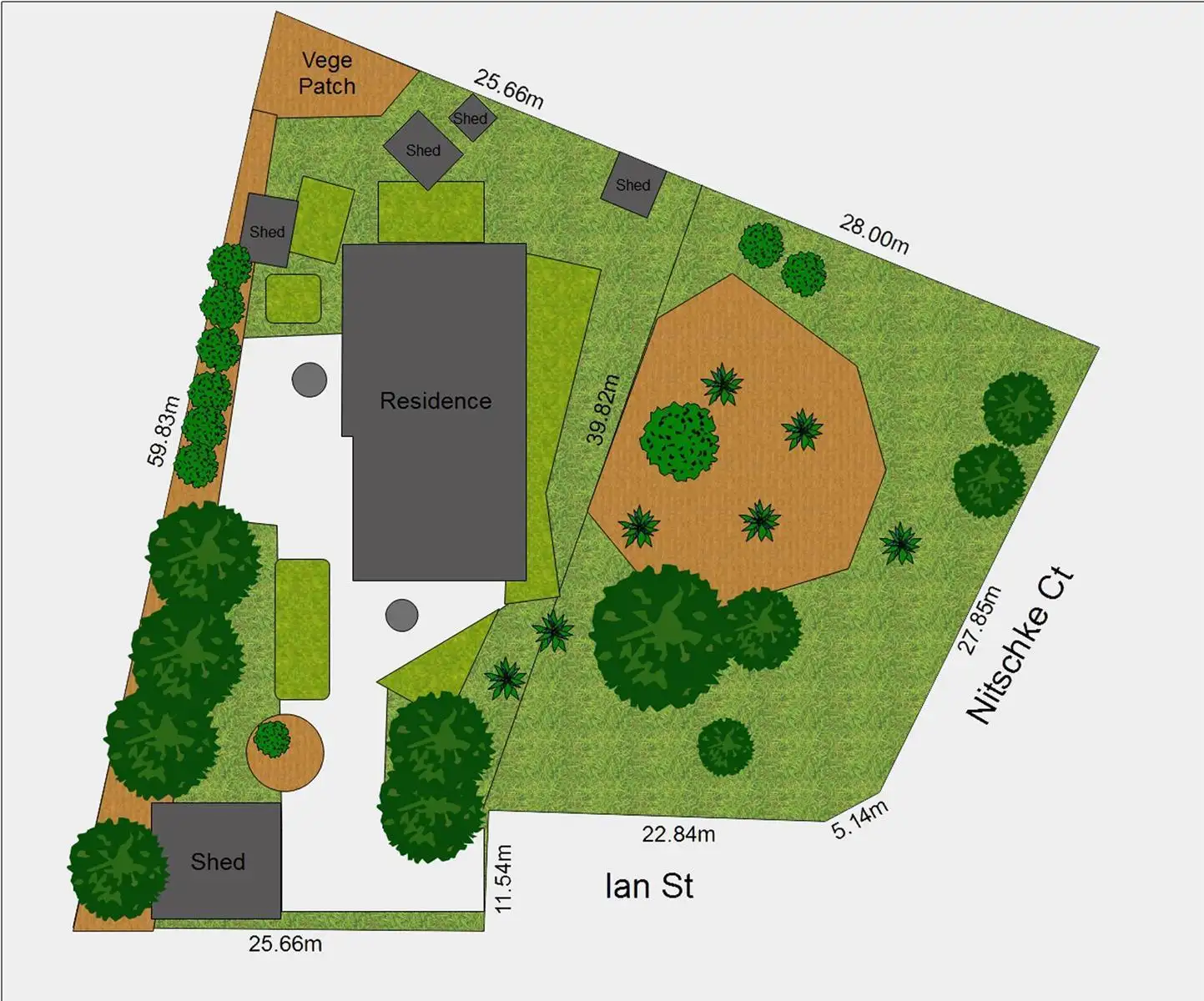 Long paved driveway extending from Ian street into large (6 x 9m) workshed with concrete floor and power.