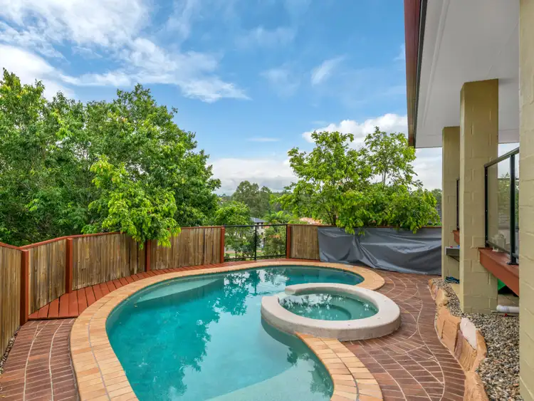 Positioned at the highest point of the cul de sac, and bordered by state forest, this delightful multi level home has space in abundance, ensuring the largest of families has space and seperation for all their pursuits. Entering the home, you are spoilt for choice. To the right the first of the living areas, the family room, adjacent a recently renovated kitchen with quality appliances throughout, breakfast bar, stone tops and quality cabinetry. Adjacent, is the informal meals area which connects directly to the front, covered deck, glass framed deck that overlooks the fully fenced and private inground pool with integrated spa.