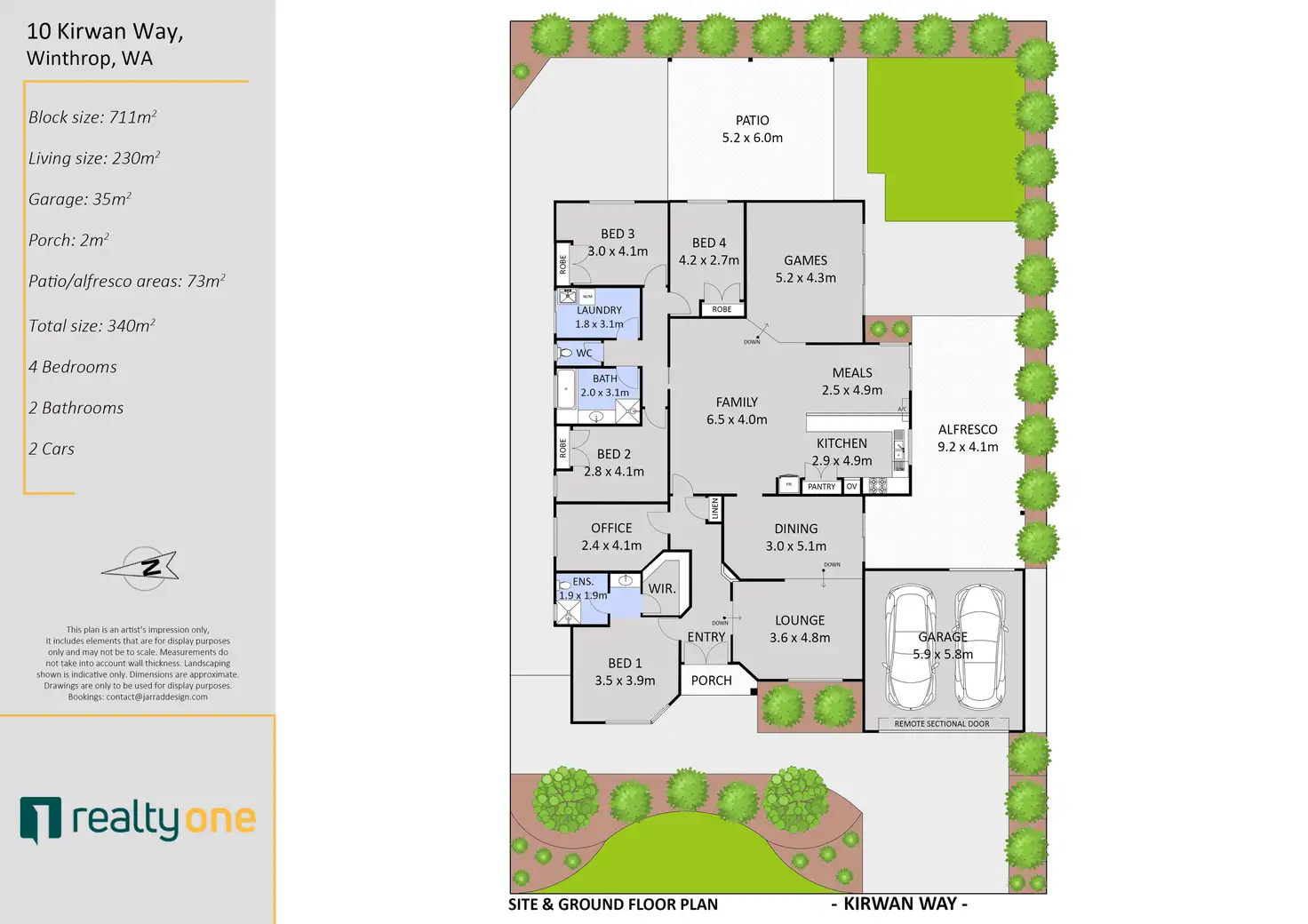 • Two Alfresco dining & Outdoor Entertainment areas with adjoining lawn