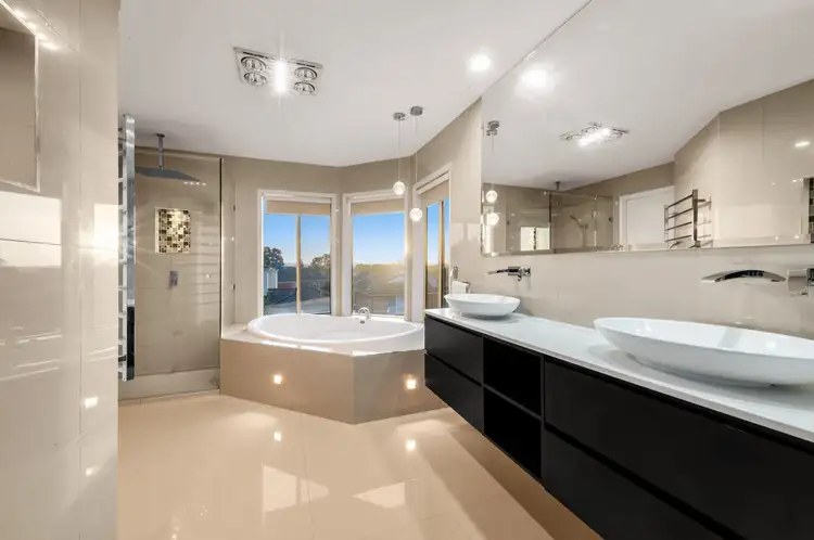 Upstairs, a retreat area with balcony access provides additional living space, complementing the four robed bedrooms, including a luxurious master suite with a walk-in robe and a spa ensuite with dual vanity. A family bathroom and separate toilet cater to the needs of the household.