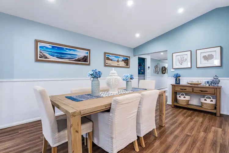10 Norton Street opens to a central display hall with tall, coffered ceilings and timber flooring, with further timber accents to enhance that homely feel. The front-facing master bedroom sits right by the entrance, and features a ceiling fan, plantation shutters, feature wall and walk-in wardrobe that leads to its own ensuite with large vanity and shower with wall niche and stylish faux stone tiling. The remaining bedrooms, along the side hall towards the back of the home, feature carpeting, ceiling fans and double built-in wardrobes, and they are supported by the similarly styled, very spacious main bathroom. The bathroom offers a large vanity with twin basins and slow close cabinetry, a shower nook with minimal glass and wall niche, and built-in window side bathtub.