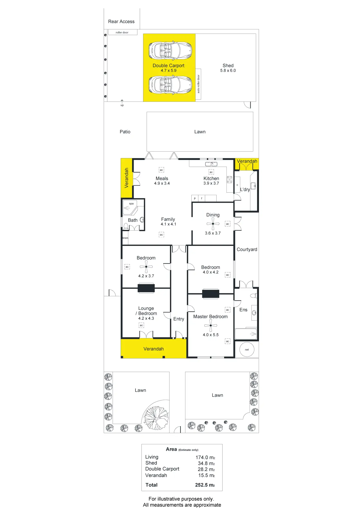 Flawless in design, the additional bedrooms are serviced by a main central bathroom with step-up corner spa bath, adding to the functional layout.