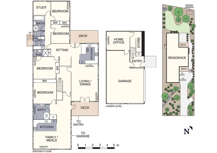Intended for multi-generational living, all living and bedroom accommodation flows across one level, beginning with a studio apartment. Enjoying a large living area, kitchenette, modern bathroom and robed bedroom, it would make an ideal teenage retreat or elder/guest accommodation.
