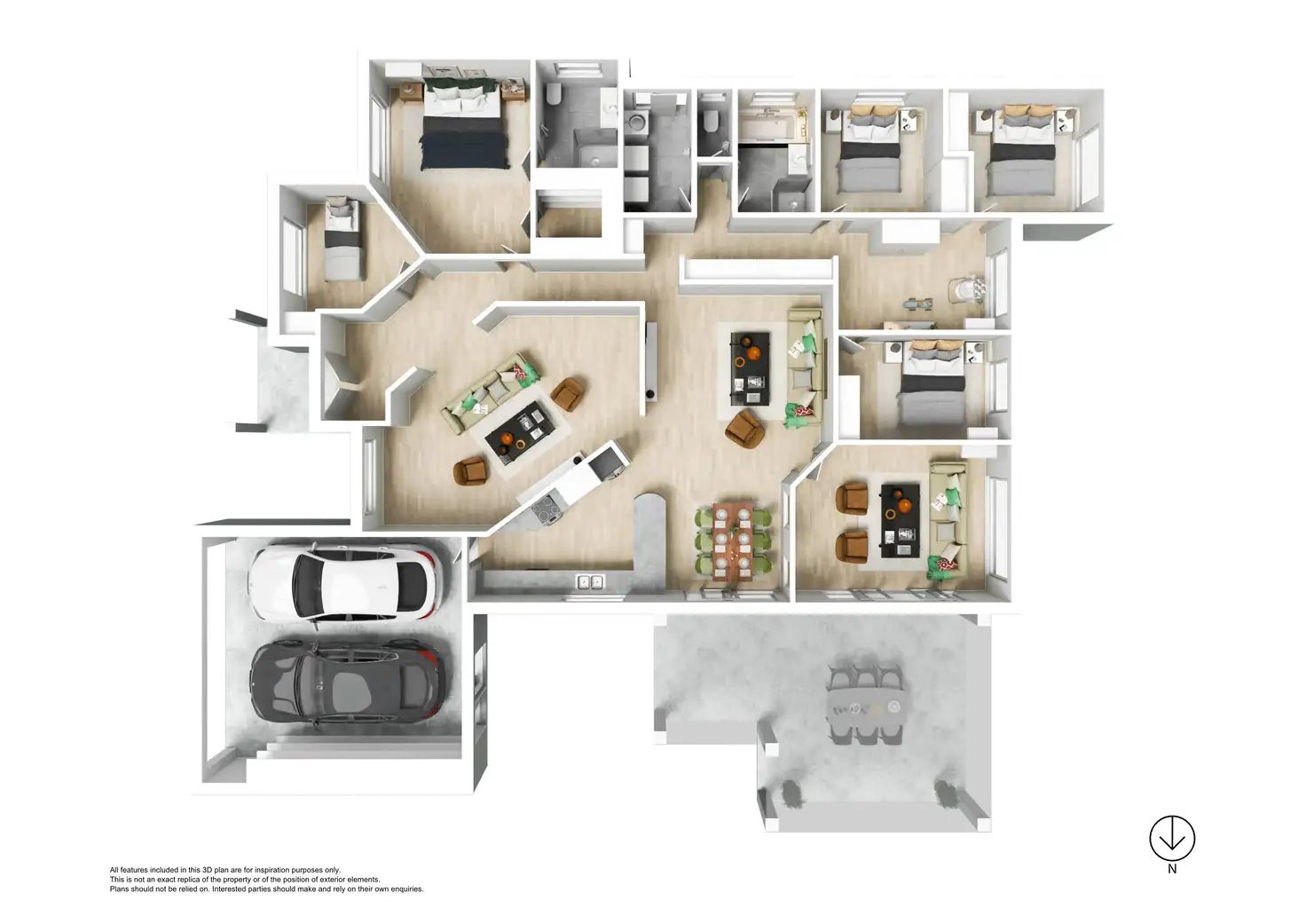 There are five well-appointed bedrooms, all have been cleverly planned to maximise privacy. The expansive master bedroom is located at the front of the residence and features an ensuite and walk-in wardrobe. Three of the other four bedrooms are located at the rear of the home, connected by the rumpus. They are spacious, featuring build in robes and all within close proximity to the main bathroom and separate toilet. The fifth bedroom also features a build in robe and is perfect for a guest room or home office.