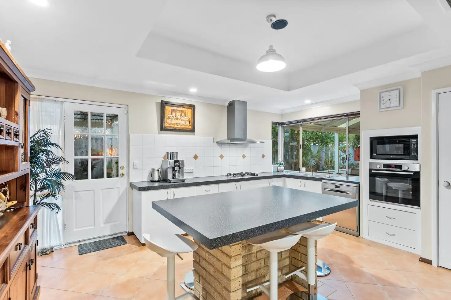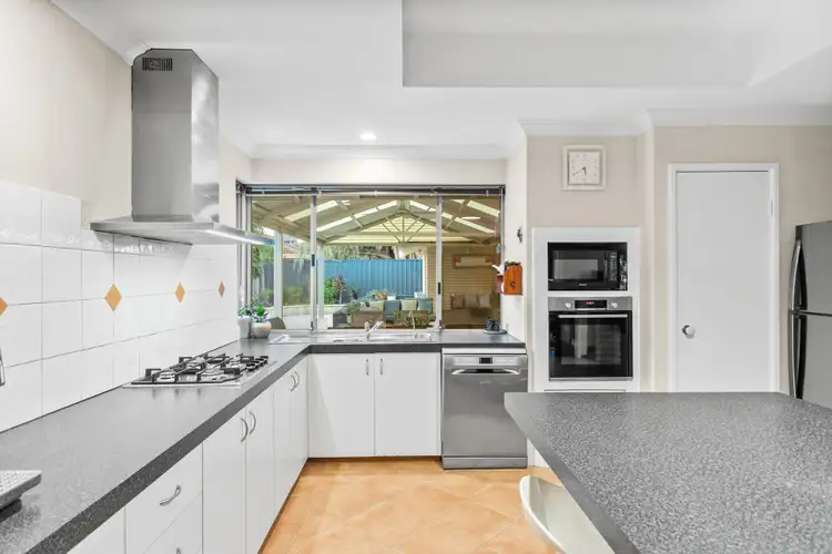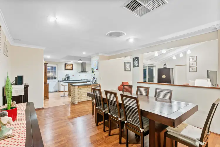 Some of the amazing features of this home include an elegant formal sunken lounge with beautiful Jarrah floors, a bright and spacious kitchen with high-quality appliances and ample storage, a huge island bench that doubles as a breakfast bar for up to 6 people, and reticulated gardens and 6.6kw solar panels for easy maintenance and energy efficiency.