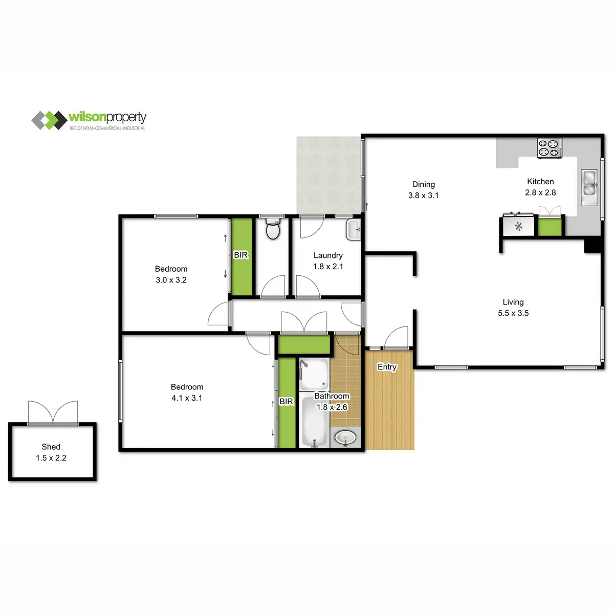 2 Bed • 1 Bath • 0 Car • 281m²