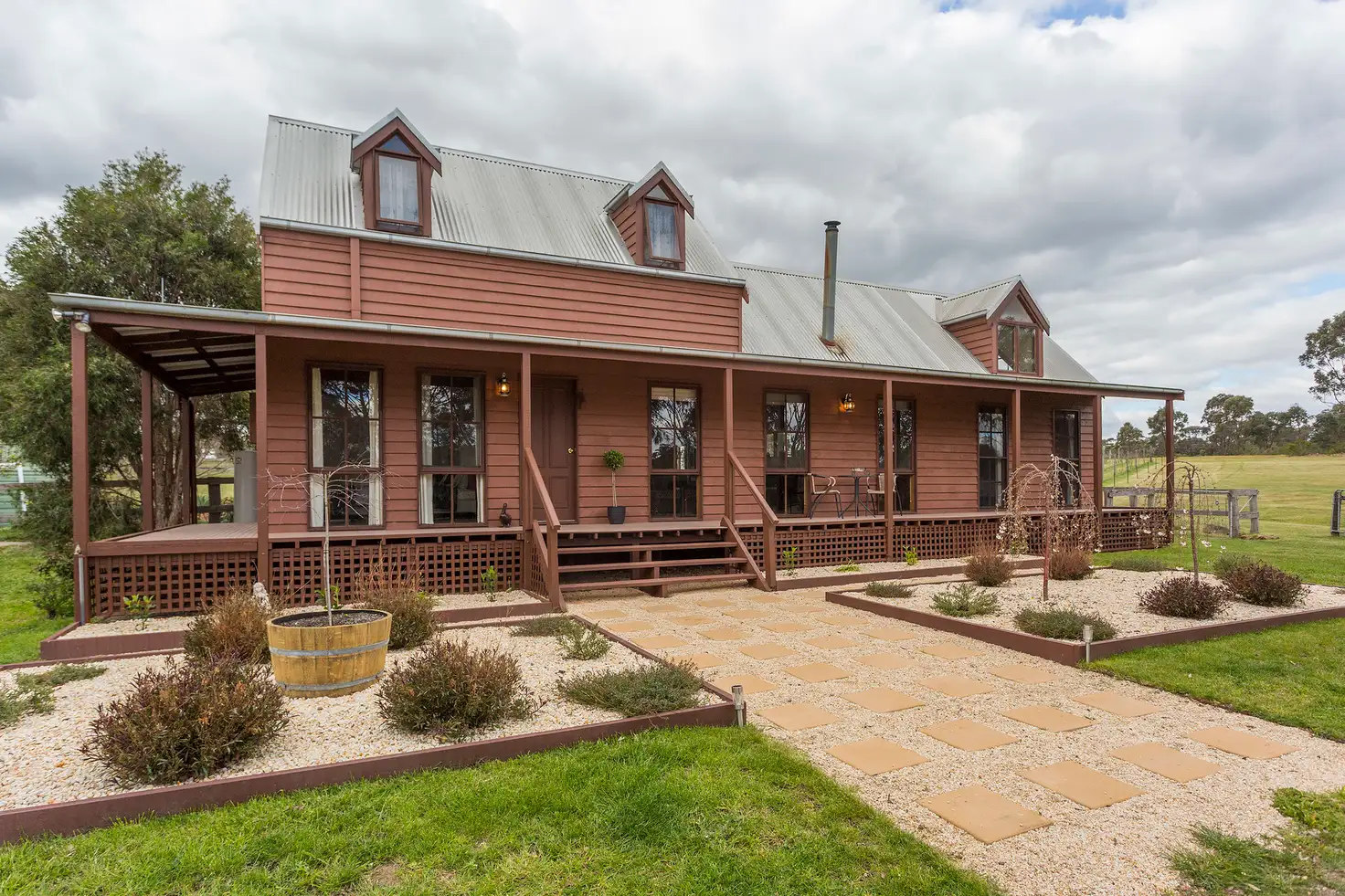 Nestled amongst gently undulating paddocks with views to Mt Alexander this lifestyle property is one of a kind.As you venture up the driveway this property slowly reveals itself like a surprise package. The home is a 2 storey western red cedar that has been lovingly cared for & modernized by its current owners to provide comfortable living with all the mod cons. A full length return verandah leads to main living room with high vaulted ceilings, boasting both reverse cycle heating & cooling plus a solid fuel heater to enjoy on those cosy winter nights. Access to a very cute mezzanine floor above ideal for a kids retreat, or quiet reading space with amazing views.