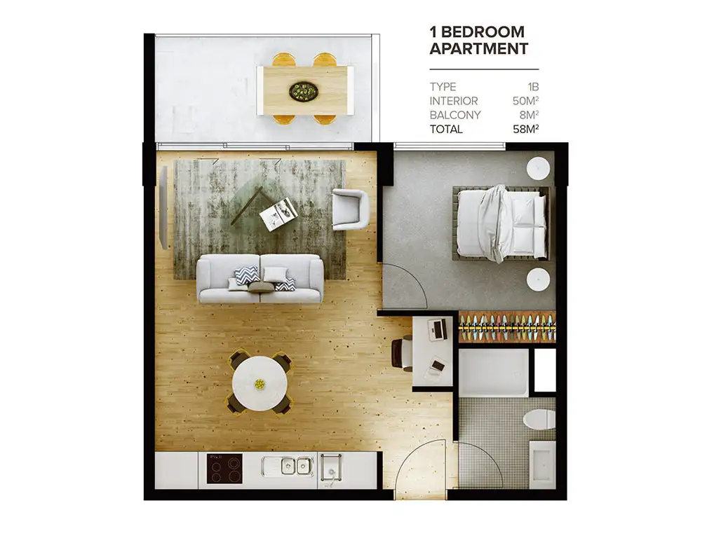1 Bed • 1 Bath • 1 Car
