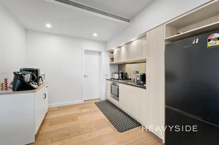 Exceptionally located for an active, modern lifestyle, this contemporary two-bedroom apartment offers easy-care allure and prized convenience. Set in a quiet street, with trams mere steps away and cafés, shopping, dining and bars all within easy reach, the home is ideally placed for first home buyers, professionals and investors looking to secure a property in a premium pocket. Stepping inside, discover a spacious central open plan living zone and premium kitchen flaunting Asko appliances, integrated dishwasher and plenty of storage. Stylish floorboards underfoot complement the space, while glass sliding doors open out to a fully covered balcony, offering a private haven for relaxation or entertaining. Both bedrooms boast plush carpet underfoot and study nook, the main also featuring built-in robes and private access to the balcony, while the sparkling bathroom is complete with shower, vanity, toilet and laundry facilities. Further enhancing the broad appeal, ducted split system heating and cooling, remote entry to car space and storage cage, lift access and secure intercom entry for peace of mind.