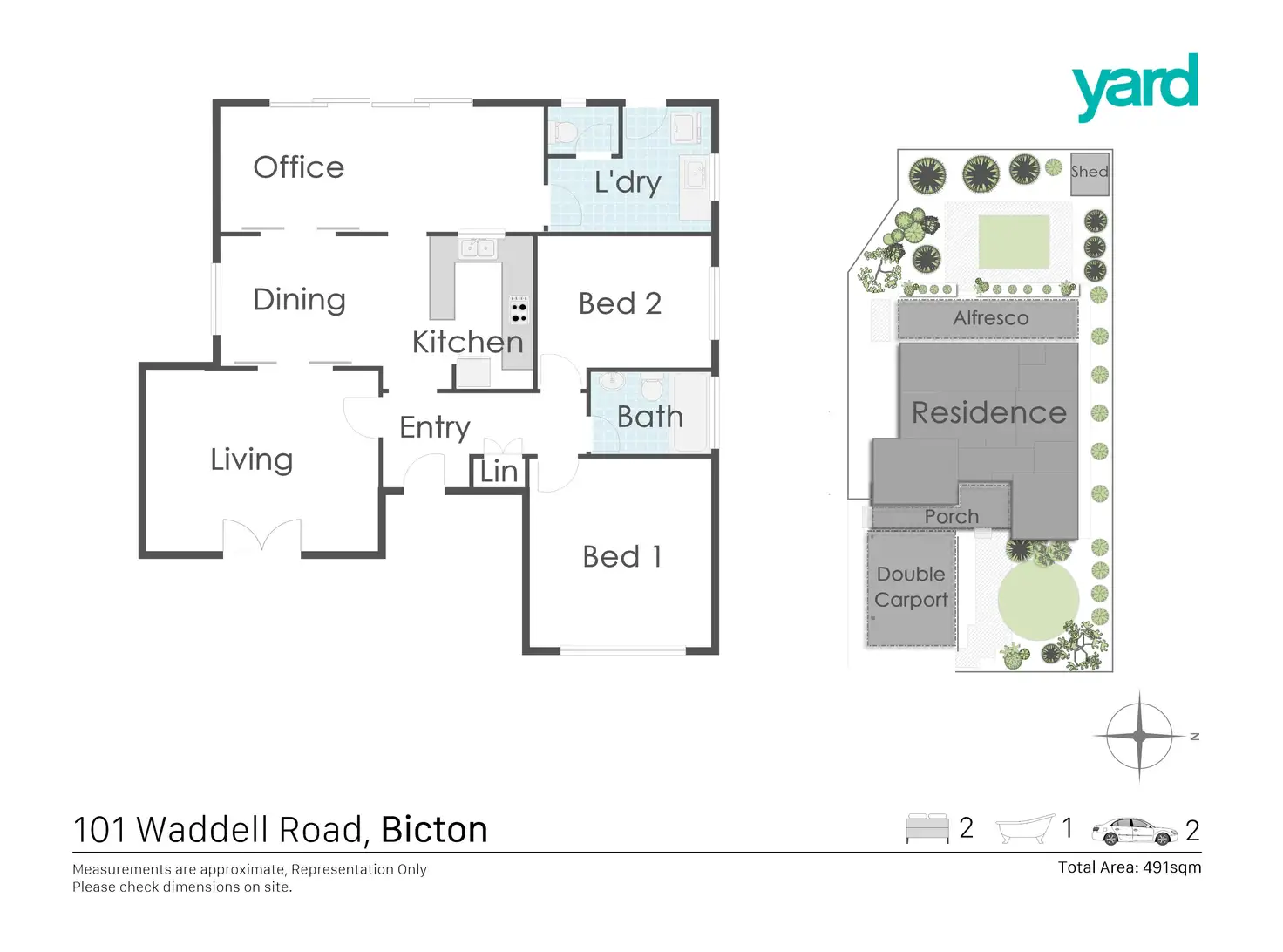 2 Bed • 1 Bath • 2 Car • 491m²