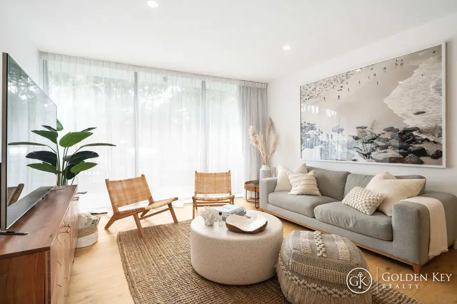 Unit 102, is straight from the pages of a magazine, located on Ground floor, gives you the added advantage of indoor, outdoor living. As soon as you enter the apartment, you know you have arrived. The warm and homely feeling from this well-designed layout and finish as the open plan flows from inside to the outdoor entertaining area.
