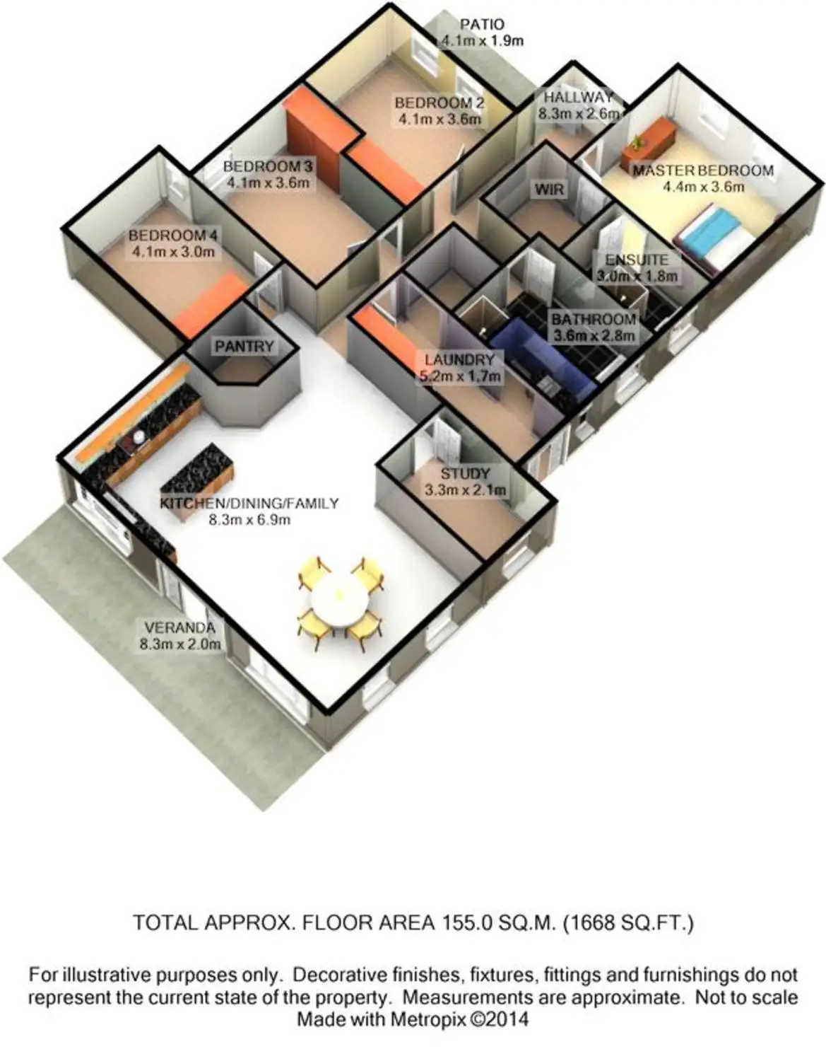 Four bedrooms plus separate study, Spacious main bedroom with c/fan, ensuite & walk in robeLand details