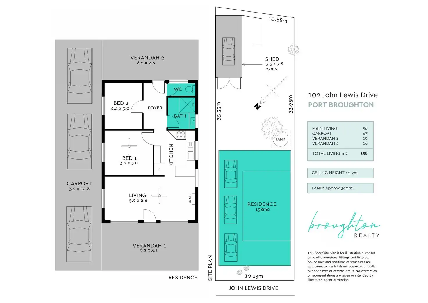 2 Bed • 1 Bath • 2 Car • 300m²