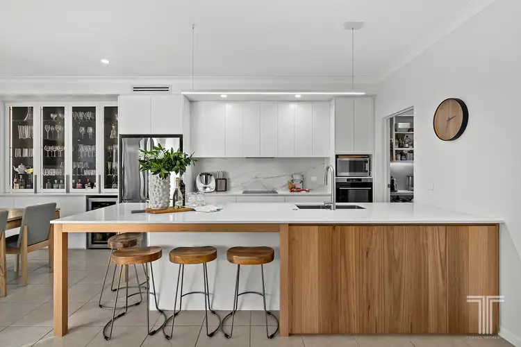 You can sprawl out comfortably over the spacious lounge, living and dining areas, which offer thoughtful flow and connection. Crafted for those who love to cook and entertain, the gourmet kitchen features a central stone island hovering below a bar light, premium appliances, self-closing cabinetry, filtered water, and a walk-in pantry.