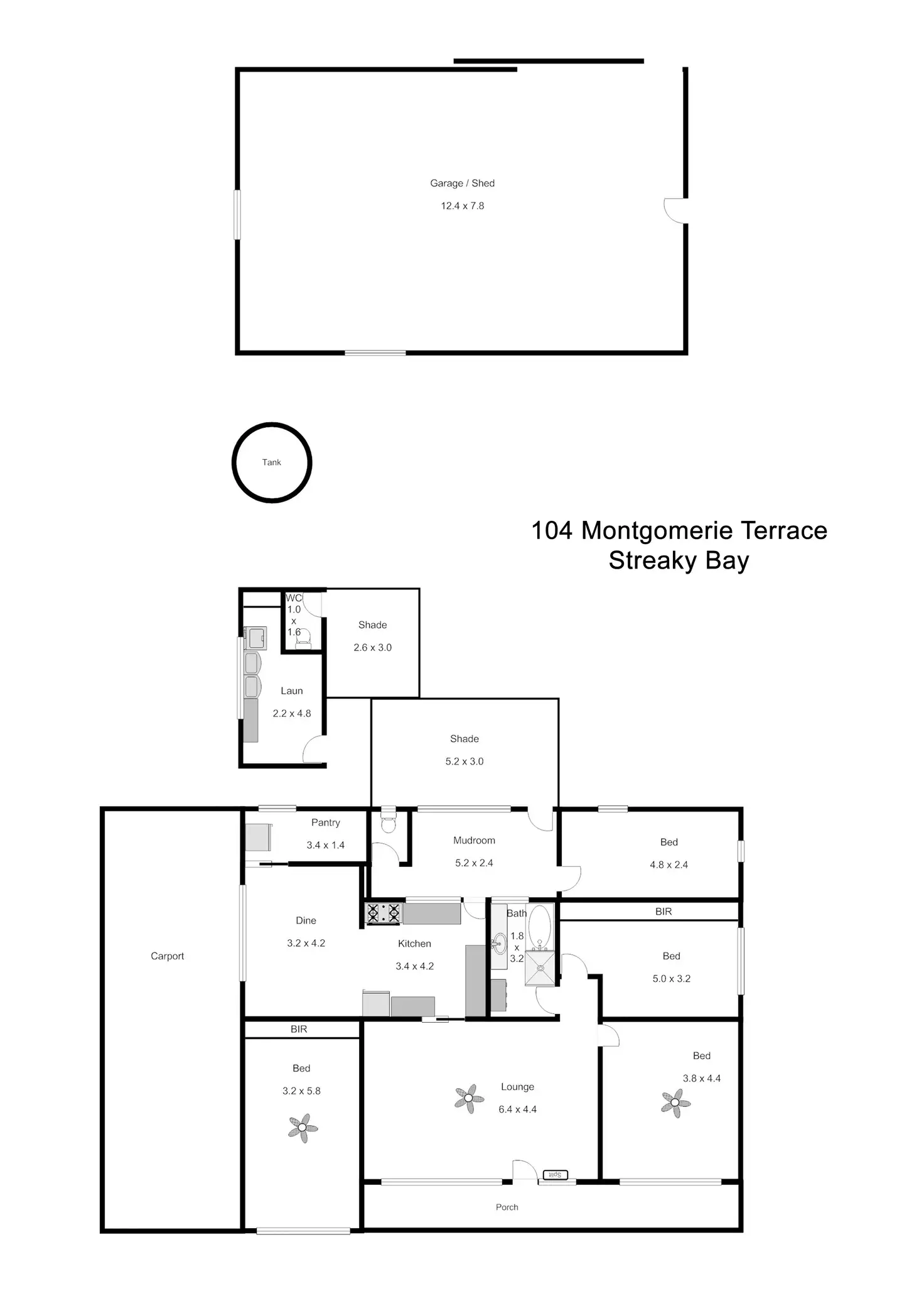 Boats, caravans and other toys are not a worry as very large powered and concreted 6 car garage can be found at the rear of the property along with poly rainwater tanks.