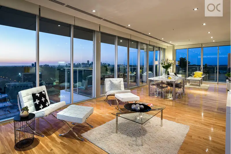 Offered for sale by the original purchaser, this stunning apartment located on the 8th floor is in a superb position on the north-western corner, enjoying a spectacular view of the coast, over to Glenelg, southern hills, city skyline and the desirable northern aspect overlooking Victoria Park. This light-filled apartment has been impeccably maintained to provide a 'near new' feel for the fortunate buyer and offers approximately 175 square metres of opulent living, with only one adjoining neighbour.