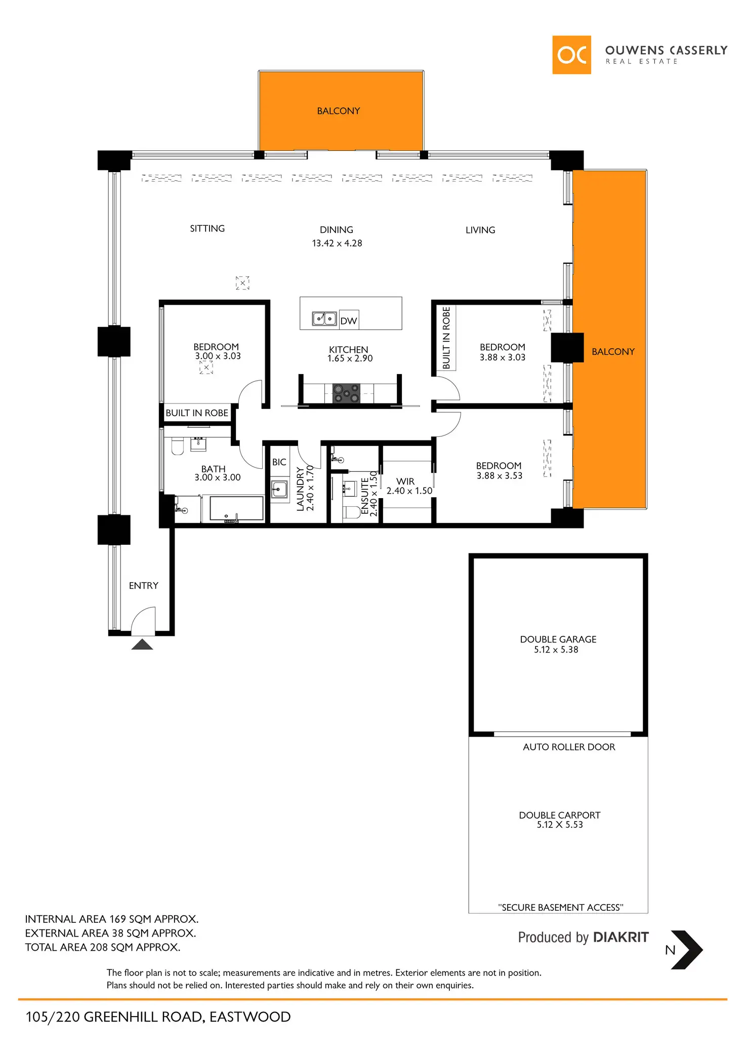 The apartment provides excellent 4-car accommodation, which includes a secure double garage & 2 side-by-side car spaces in front of the enclosed garage.