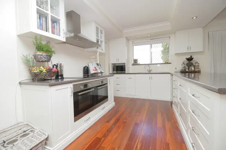 Your kitchen is pure delight, crisp white cupboards and marble style bench tops plus ample bench and cupboard space will make cooking and entertaining a breeze, you have two ovens, large cook top and dishwasher, this will bring the master chef out from you for sure.