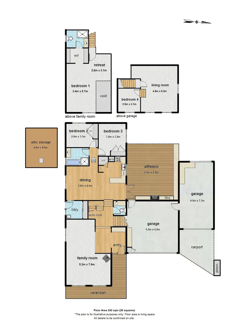 • Upstairs master with retreat, ensuite and walk-in wardrobe plus a third living space and study nook with a 4th bedroom.