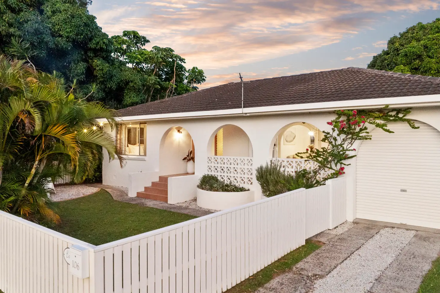 This thoughtfully updated cottage showcases beautiful timber floors, bespoke joinery, Mediterranean arches, a micro-cement feature wall in the entertainment area, and a stylish bathroom serving two spacious bedrooms.