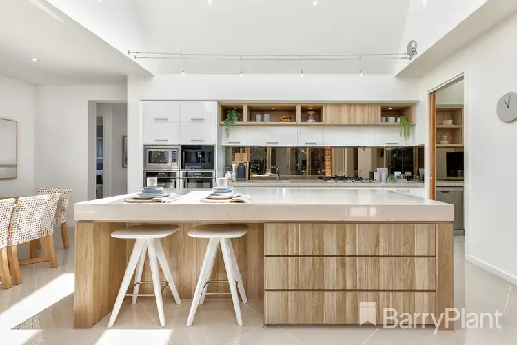 Nestled at the rear of the home is an extra living room, and tucked down the hallway are three bedrooms, all with BIRs; some include sliding door access to the backyard, a central bathroom, powder room, and laundry. Notable extras include ducted heating, evaporative cooling, stunning light fittings, feature walls, and a double lock-up garage.