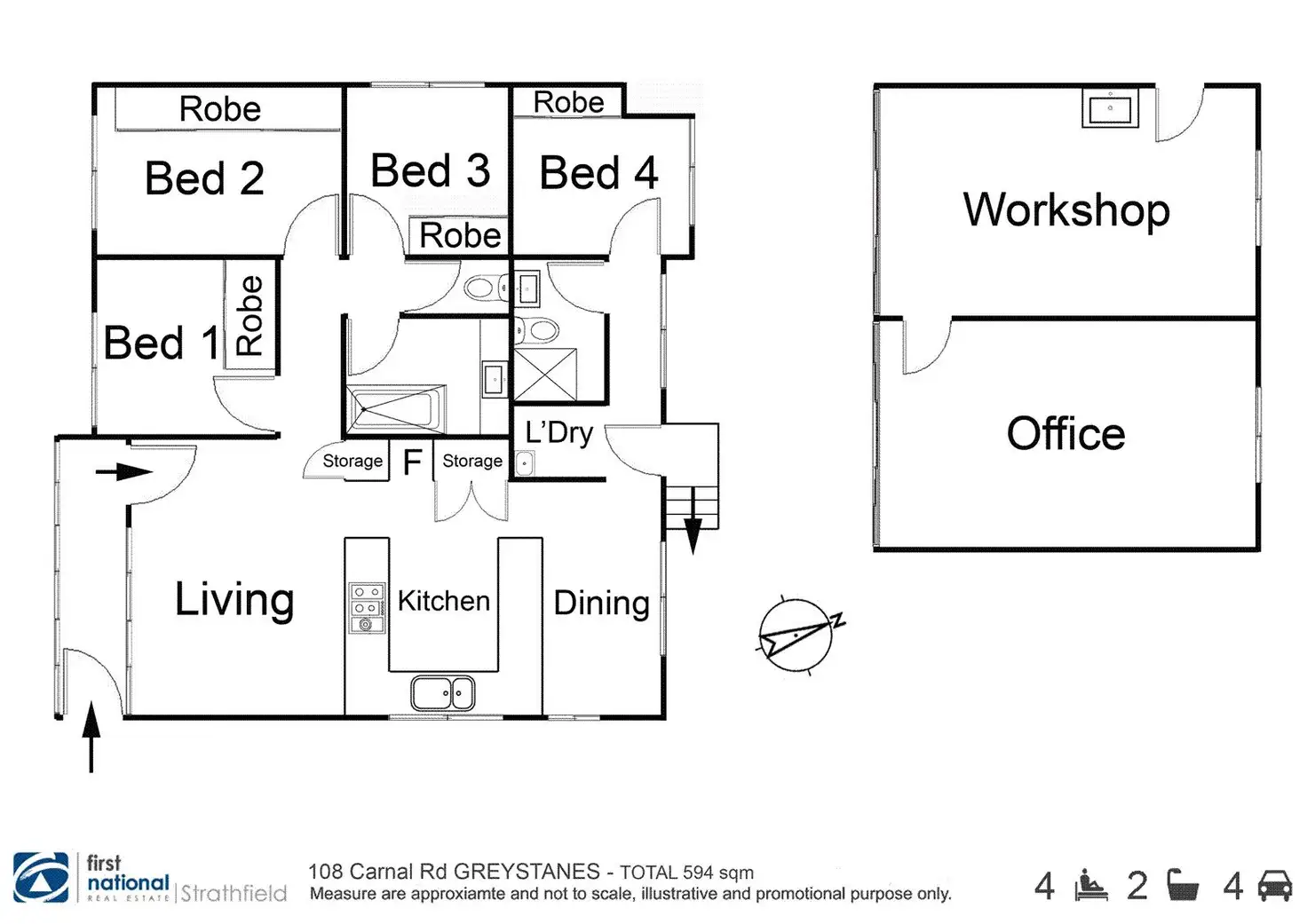 4 Bed • 2 Bath • 4 Car • 594m²