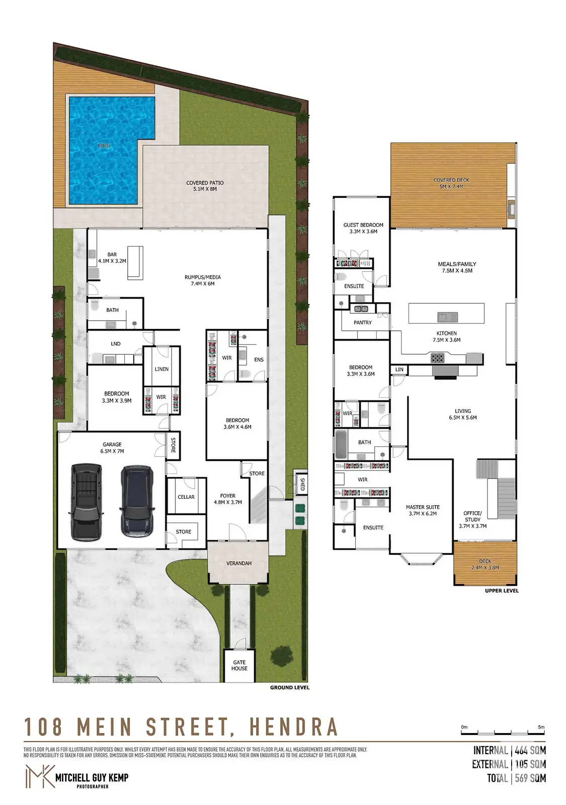 The entertainment options continue downstairs, with an expansive rumpus room that includes a bar and a 9”4' billiard table. Outside, a covered patio leads to a fully-fenced grassed rear yard and a glass-framed in-ground swimming pool.