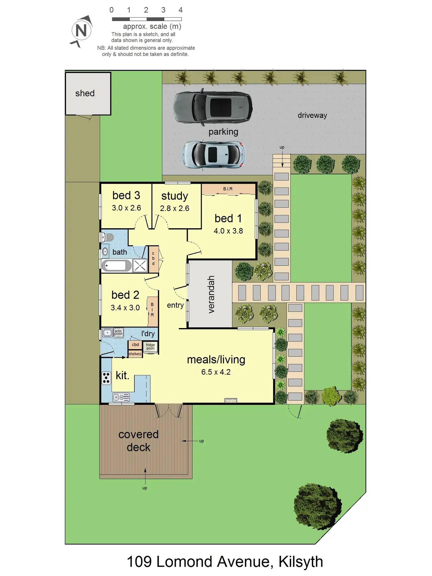 Timber framed French doors open out to a brand new merbau deck with pitched roof pergola and tinted skylights, ideal for entertaining year round. From the deck, you can enjoy the rear lawn area with its mature flowering gums and secure timber fence providing great privacy. With gate access to the front (which joins the gravel path) and a side path that leads to a lockable shed, this garden is easy to maintain and ready for you to relax and enjoy.