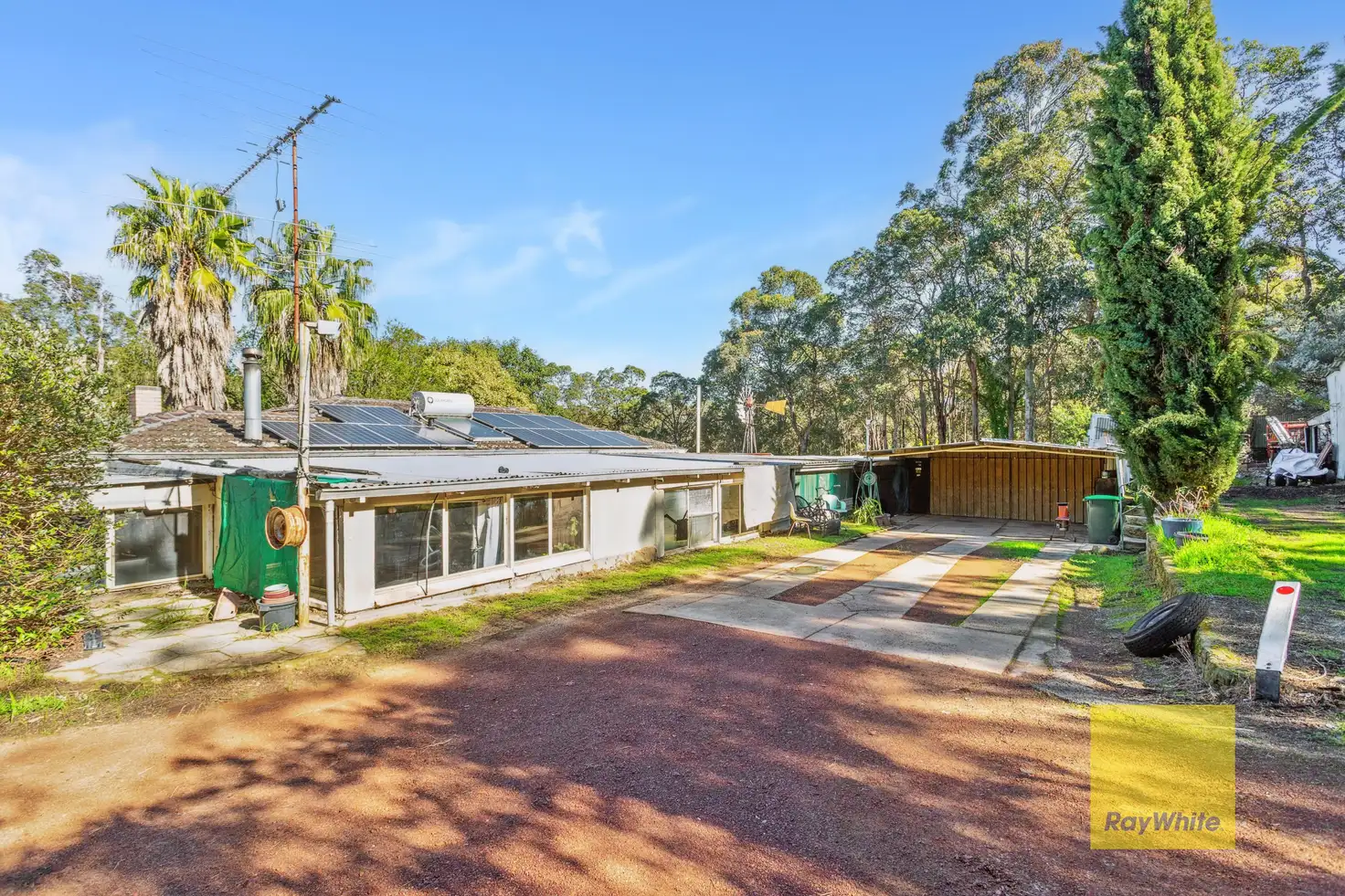 While the main house needs some work, it's packed with solid features that provide a great foundation for future improvements. Original jarrah floorboards, double brick construction, a concrete wrap-around veranda and patio, plus a solar hot water system are all already in place. The generous block has been thoughtfully terraced in several sections, includes a secure front yard, and even features a 60ft well with a traditional windmill. For those who need extra space, there are multiple sheds throughout the property, including a large four-car garage complete with a mechanical pit - perfect for car enthusiasts or as a dedicated workspace while you renovate.