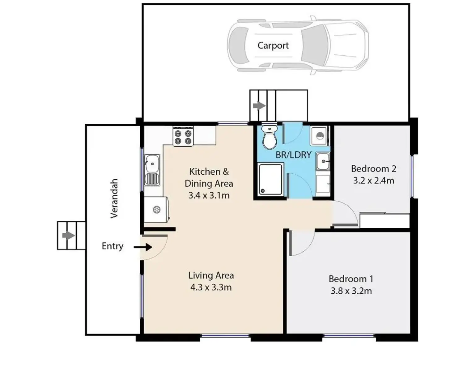 2 Bed • 1 Bath • 1 Car • 759m²