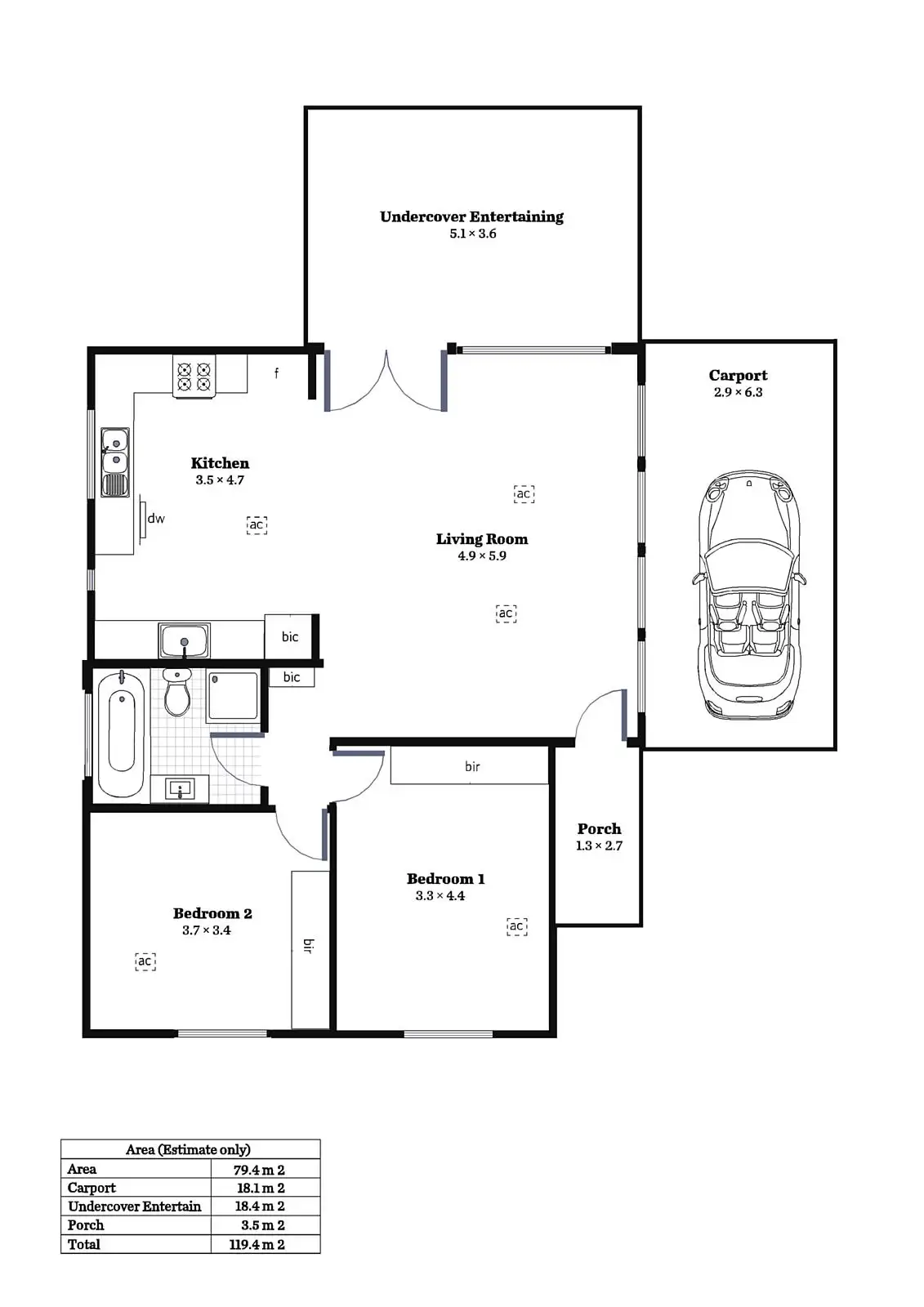 2 Bed • 1 Bath • 1 Car