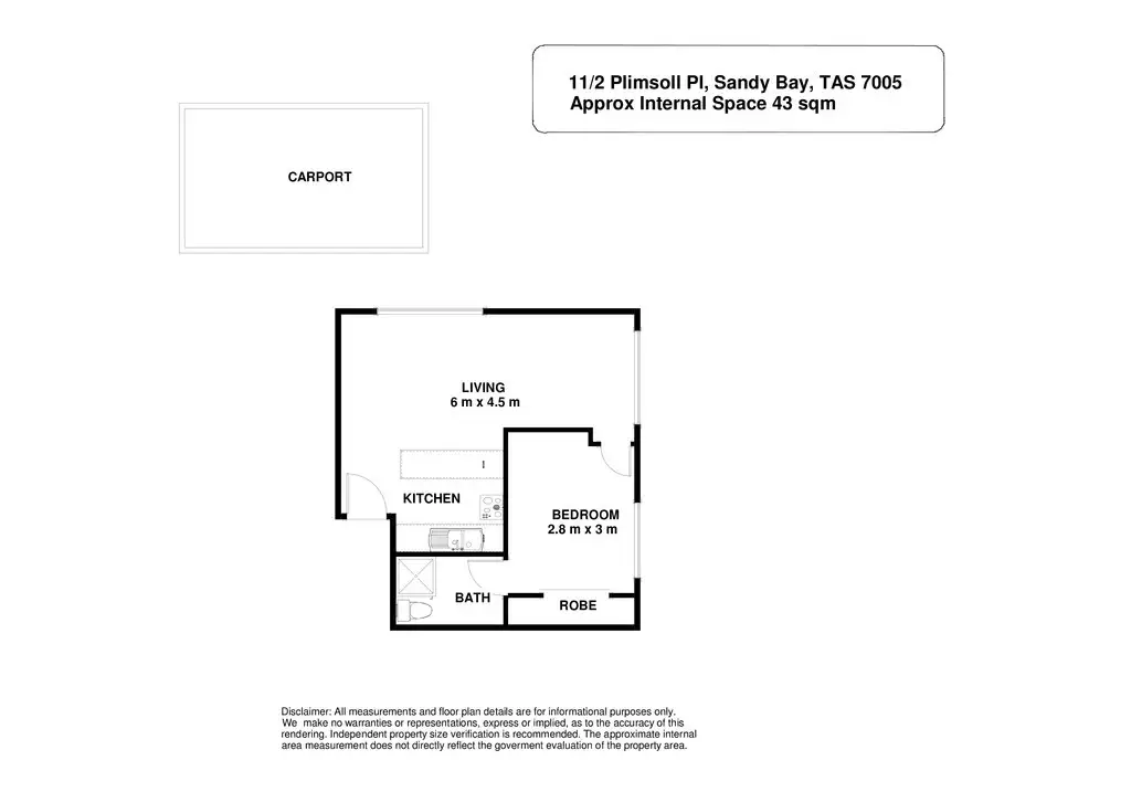 1 Bed • 1 Bath • 1 Car • 43m²