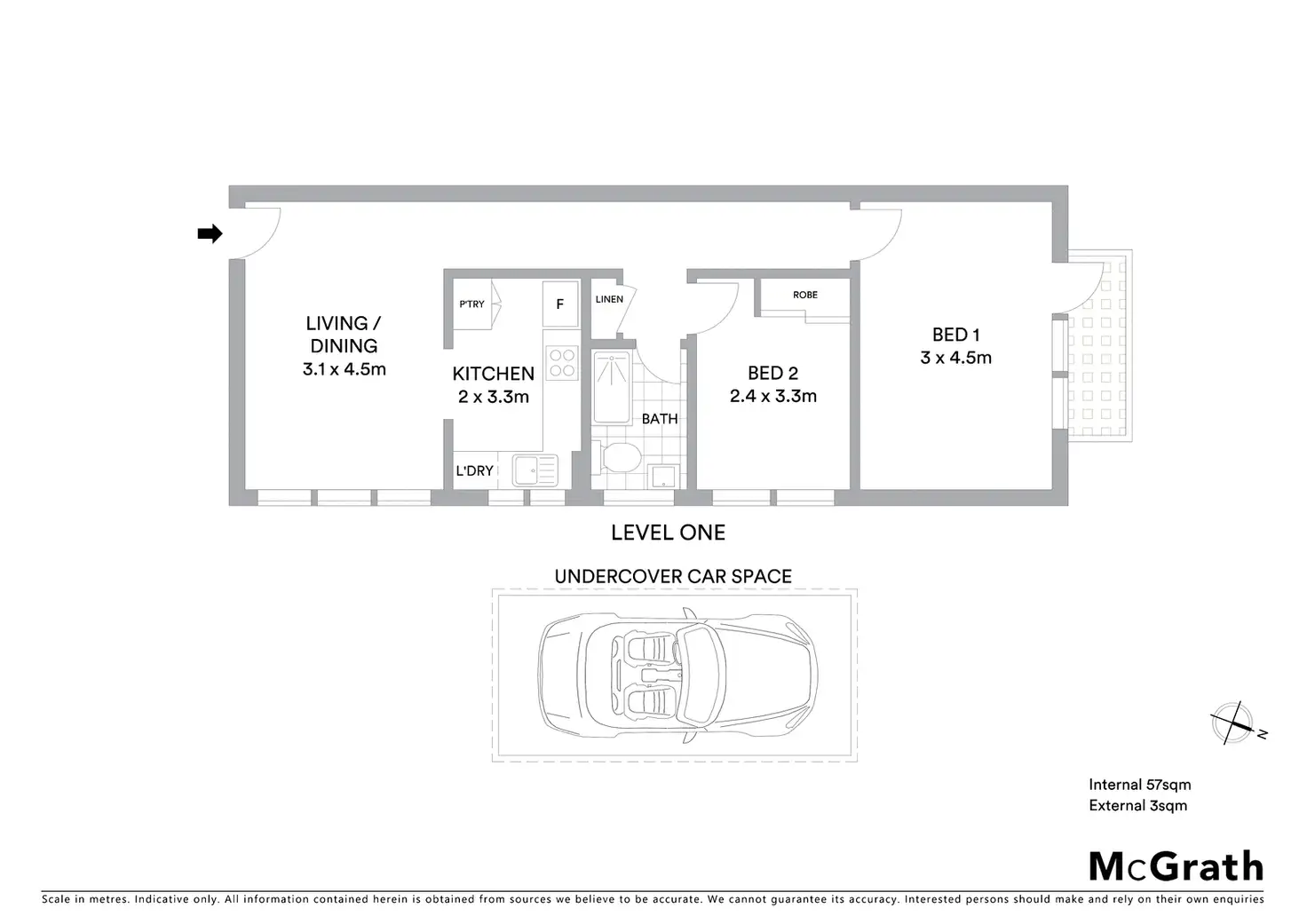 2 Bed • 1 Bath • 1 Car • 77.3m²
