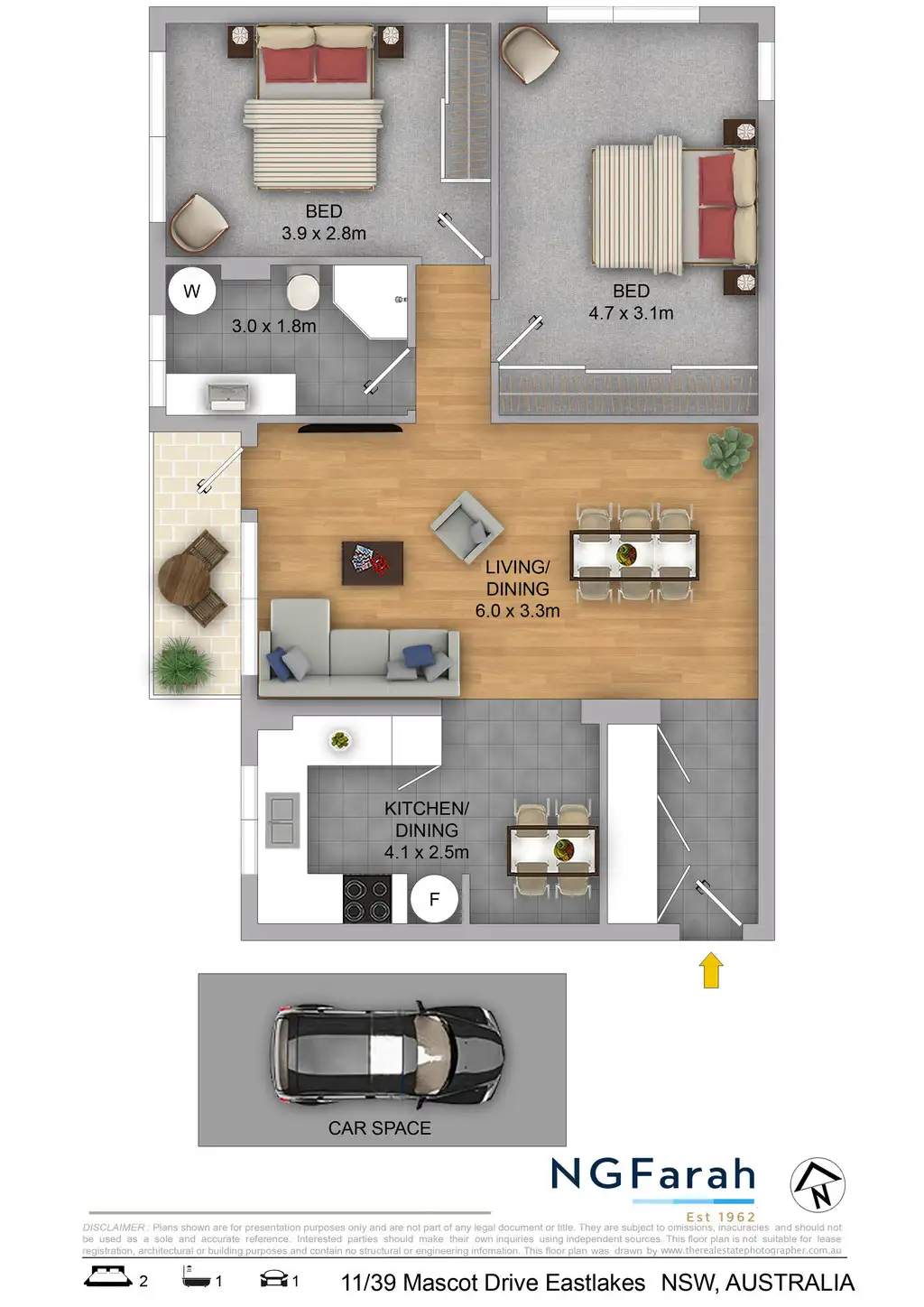 2 Bed • 1 Bath • 1 Car