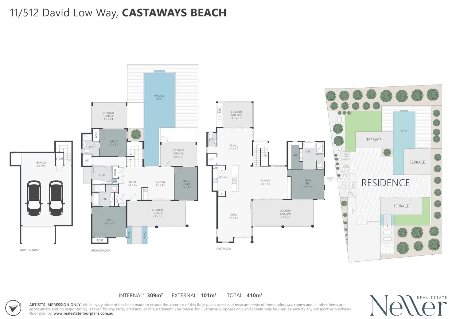 Across three levels, with lift access to all, the home comprises formal entry, four bedrooms, three bathrooms plus powder room, three living areas, a premium kitchen, multiple terraces to savour the stunning outlook and soak up sea breezes, separate laundry, and two car garage - on a beautifully landscaped 727m2 block.